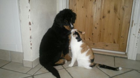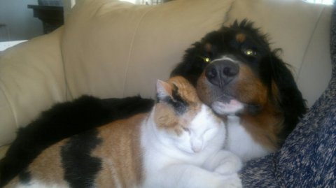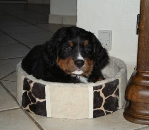 Basil (5 måneder) fylder godt i sofaen sammen med Louise