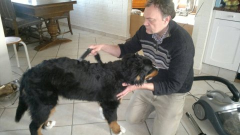Bo er igang med foråsrengøringen - stakkels Basil :-) (han nyder det faktisk)